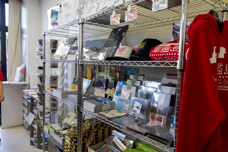 - 受付の室内で多彩なおみやげ、オリジナル軍艦島グッズなどが購入できます。
