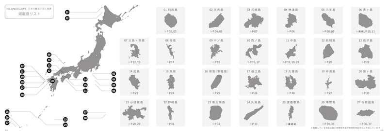 巻末には一作目と同様に、見開きでこの本に写真を掲載している島の一覧を載せています。
