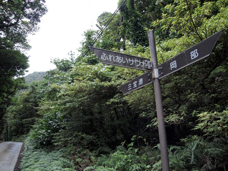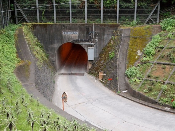 カルデラ内を一周する道路に戻って時計回りに歩き続けます。三宝港に出るトンネルが見えてきました。本当ならトンネルを抜けて港の様子をゆっくり見たいと出発時は思っていましたが、普段運動不足なのでこの時もうすでに疲労困憊で横目に見ながら先に行きます。