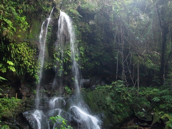 青酎を買ってあちこちスクーターで走り、八丈島にいくつかある温泉のひとつ「ふれあいの湯」でまったり。そのあとは近くの裏見が滝に寄ったりして、島をぐるっと一周する道を走り、宿に戻りました。