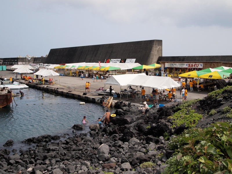 さて、この日は八丈島の観光情報を積極的にツイートしているアカウント「八丈島の情報発信チーム8jo」さんにお会いしたい旨リプライしたら、お返事をいただけたので午後お会いすることになっていました。約束の午後まで時間があるので、取りあえず、神湊でこの日から開催のイベント「浜あそび」を覗きに。色々出店があったり、ボートなどの遊びができるっぽいですね。