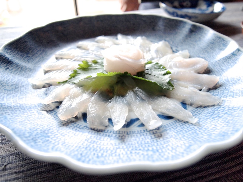 色々空間舎で話しを聞かせてもらっていると、他のお客さんが釣ったカワハギとムロアジのお刺身を、空間舎の奥さんの娘婿さんでシェフさんが綺麗に盛りつけていて、しかもそれをサービスでいただいたり(通常はやってません、注意!)、この日から期間限定で始まっていたランチをごちそうになったり、本当にいい時間でした。
