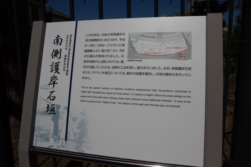 日本史に登場する鎖国時代の長崎の「出島」は今は周りを埋め立てられて、傍目にはもう完全に街の一部になっていますが、護岸の一部が復元されています。当時の建物も色々復元されているようでしたが時間がなかったのでスルー。
