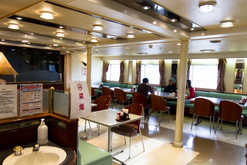 荷物を席のそばに置いて、レストランで朝食をとったり、デッキに出て海を眺めたりします。こののんびりした船旅、大好きなんですよね。