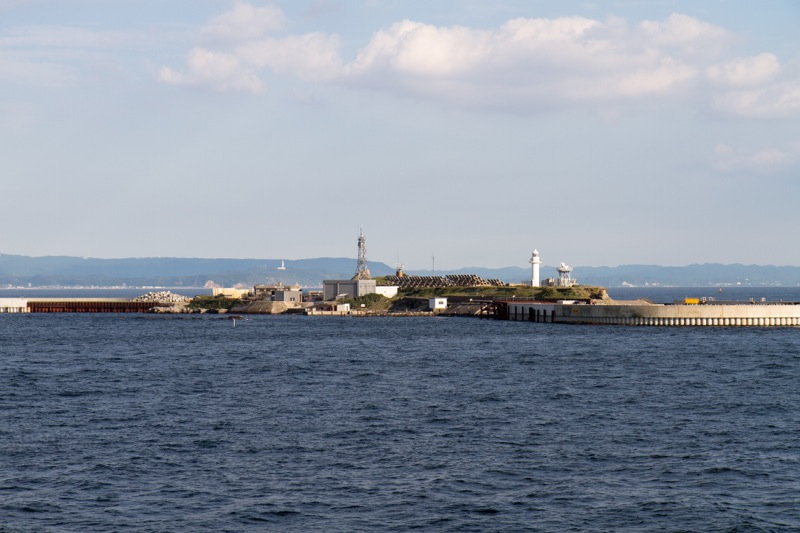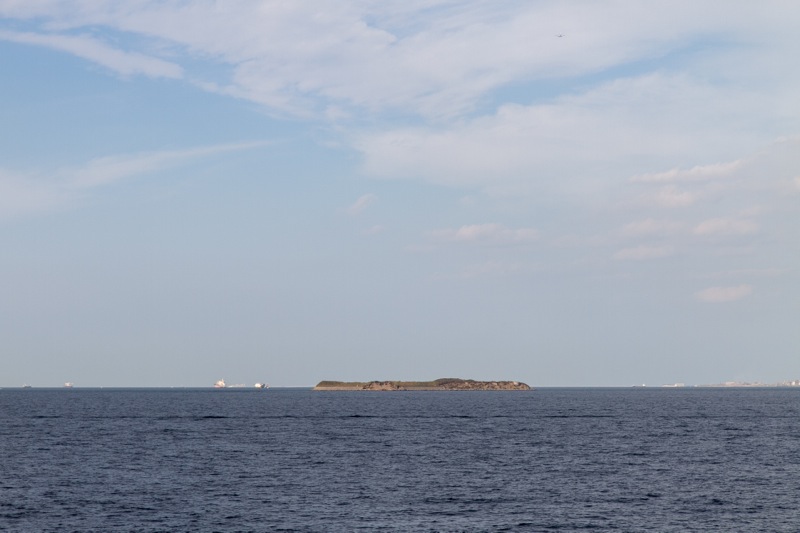千葉の富津岬そばを通る時には、人工の島「第一海堡」「第二海堡」を見ることが出来ます。何度もこの船に乗ってここを通っているはずなんですが、今回初めてしっかり見ました。この海堡、明治から大正にかけて東京湾の防衛目的で作られた人工の島で、かつての砲台や兵舎跡などが残っているそうです。うわぁ、上陸してみてぇーーー。