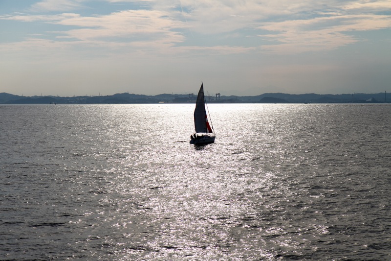 第二海堡を過ぎて、船室戻って少し寝たり、また外に出て海を眺めたりしてもう夕刻。