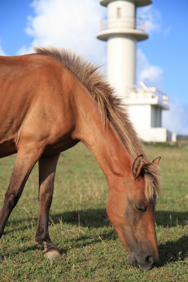 この馬、こんなに自由に放牧されてはいますが、れっきとした天然記念物の「与那国馬」です。他の品種と交配してこなかったので日本在来の馬の中で、その血を一番濃く保持しているとか。
