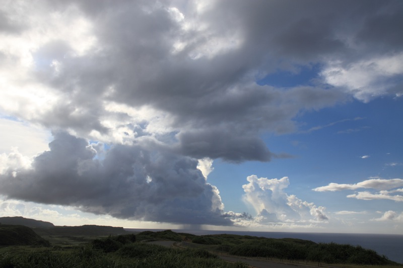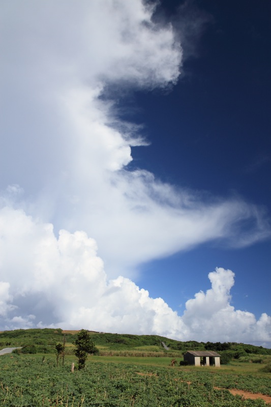 空の青さとくっきりとした雲が沖縄の島にいるなと感じさせます。こういう空を見たかったんですよ!