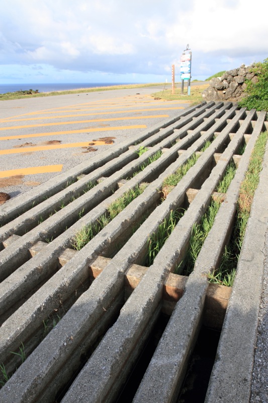 道路に結構な幅の溝が作られていますが、馬や牛、鹿、猪などはこの連続する溝の上を歩くことができないという習性を利用した「柵代わりのもの」なのだとか。与那国島だと柵を作っても台風で飛ばされることもあるだろうし、確かにこっちの方がよいですね。
