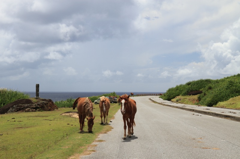 あ、アップの写真撮るの忘れた・・・。柵もないところでこんなに間近に馬に接したことがなかったので、おろおろ触ったりするのが精一杯。東崎の与那国馬とはえらい違いです。
