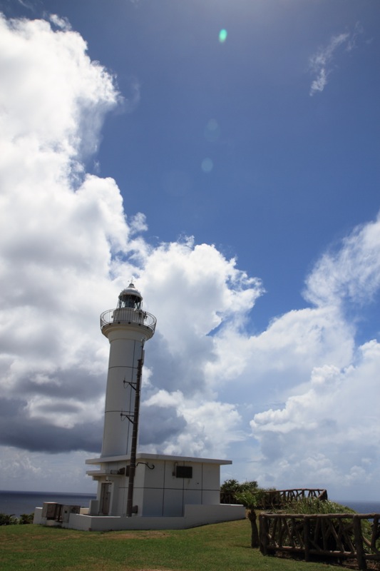 久部良まで来ました。昨日の夕方にはわからなかったですが、ここの海も真っ青ですね。まさにヨナグニブルー。久部良の港の灯台が見えます。