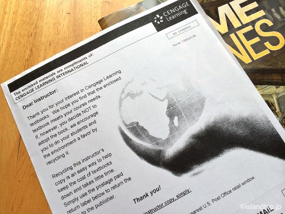 本の他には、これを使用して授業をする先生に向けたメッセージペーパーが入っていました。