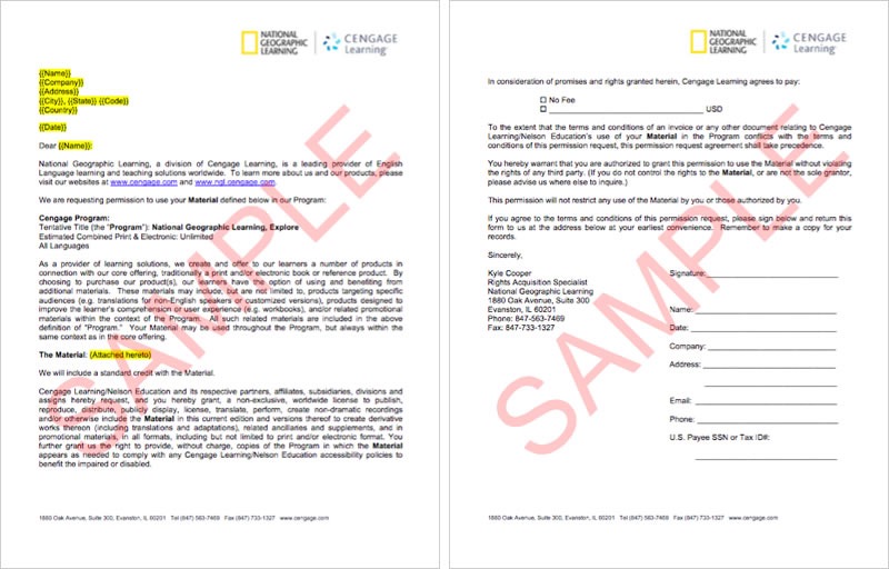 さらに、サンプルの許諾書が添付されているので内容を確認して、納得できるなら本契約用のものを送る、写真には250ドルの使用料を払うつもり、などと書かれていました。