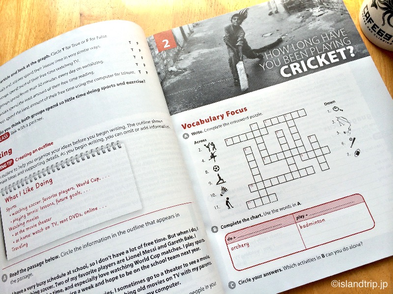 中は、ナショナルジオグラフィック誌の記事を元にした英語教材です。クイズ形式だったりクロスワードがあったりと多彩です。