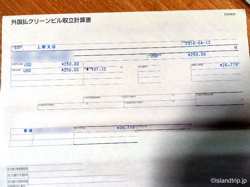 さらにその後、小切手取引した旨と換金の為替レート、振込金額が記載された書類が郵送されてきました。