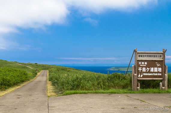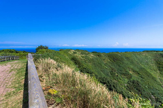 曲がりくねった道と観察舎、その向こうに海。実に絵になる光景です。これで海鳥でもいてくれれば最高なのでしょうが、いなくても実にフォトジェニック。