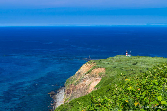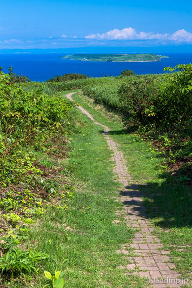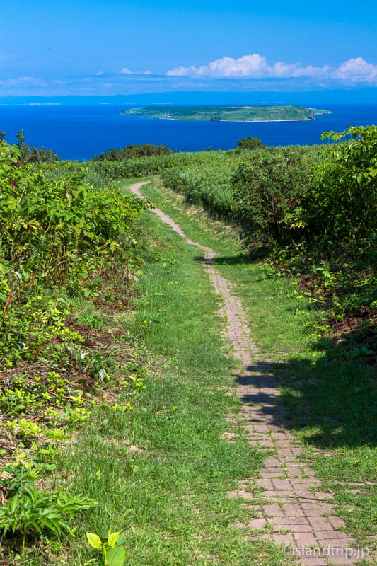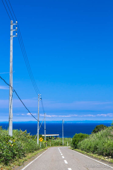 観音岬でしばらく海を眺めてから、道を先に進みます。ゴメ岬にある天売島灯台も見えます。