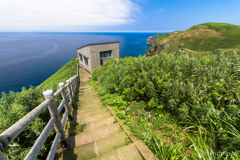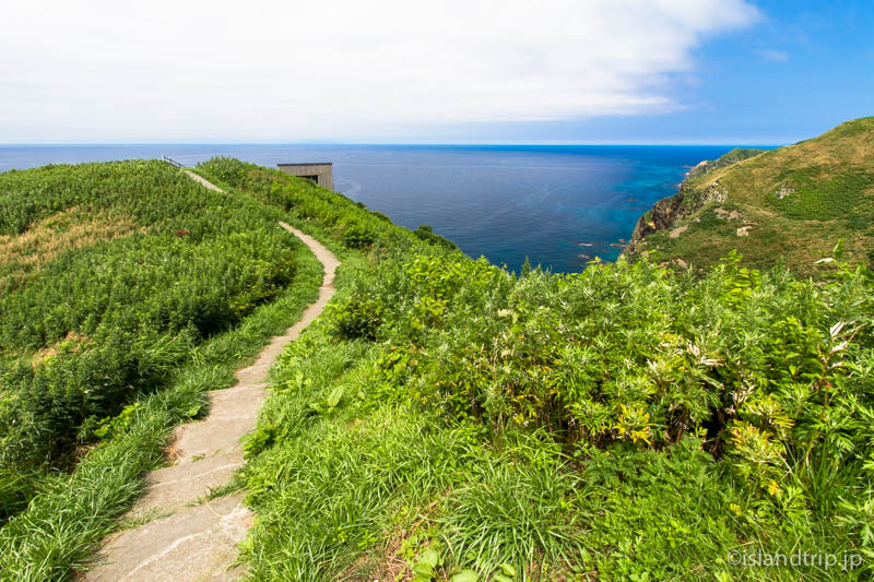 小径を行くと、岬の先には見えるのは「海鳥観察舎」。