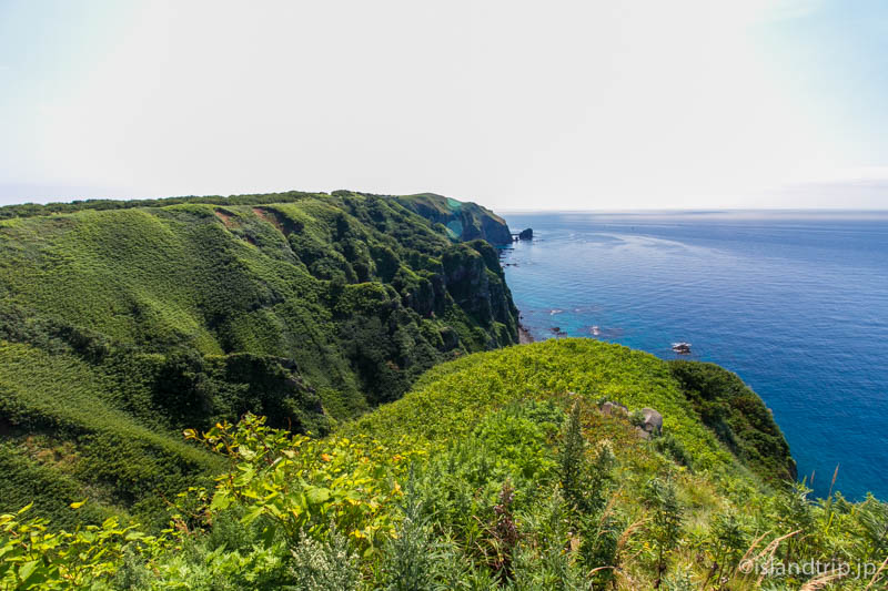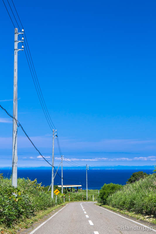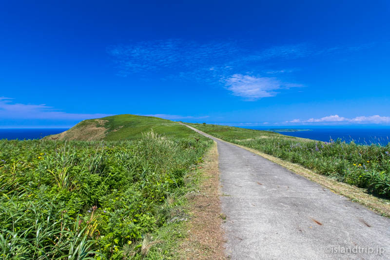 赤岩灯台を過ぎ、さらに登り坂に苦しめられながらも自転車で回ったほうがいいと思えるほど、道からの眺めは素晴らしかった。周りは低い灌木だけなので、少しでも高いところに出れば、緑を縫う道と、その向こうに空と海が広がるのです。