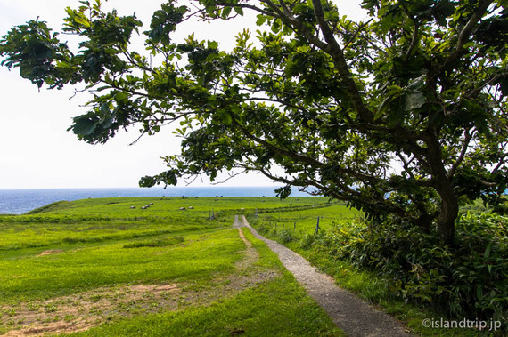 小さな島の中に、海を背にした牧草地が広がっているのが少し不思議に感じられます。