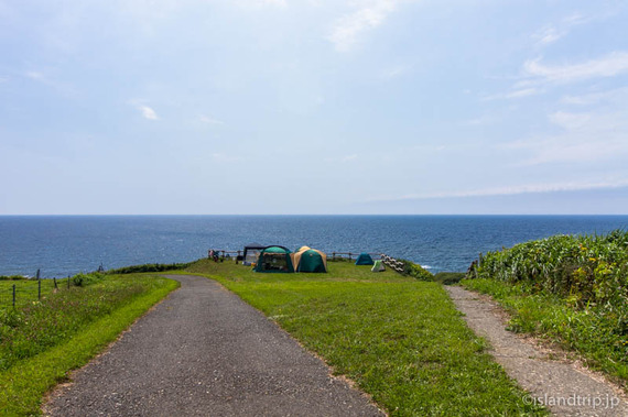 テントサイトは道の際、海まで降りる斜面の上にありました。オーシャンビューです。近くには綺麗なトイレもありました。