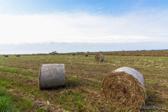 刈り取られた牧草がロール状になっています。いかにも、という光景ですね。