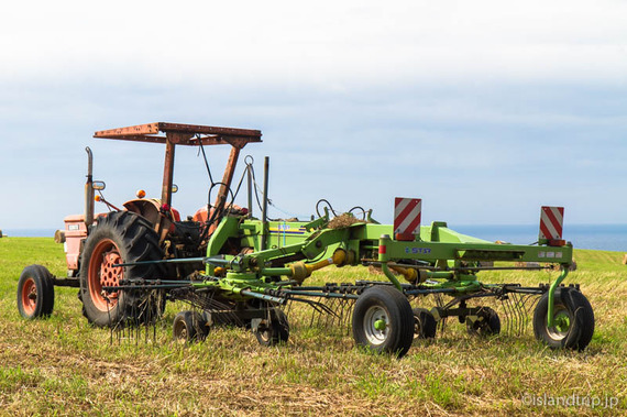これは通称「テッター」という機械が前面についたトラクター。爪が並んでいます。これで刈った牧草をひっくり返してさらに乾燥させるのだとか。動いているところは見られず残念。