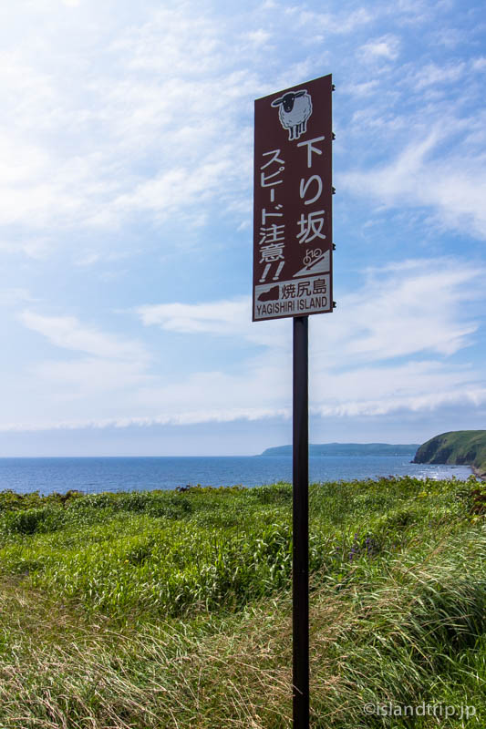 天売島ではウトウだったスピード注意の看板も、ここ焼尻島ではめん羊です。