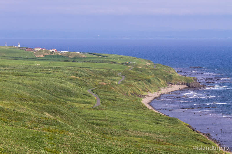 開けた草地を一本の道が海まで続いているのが見えます。