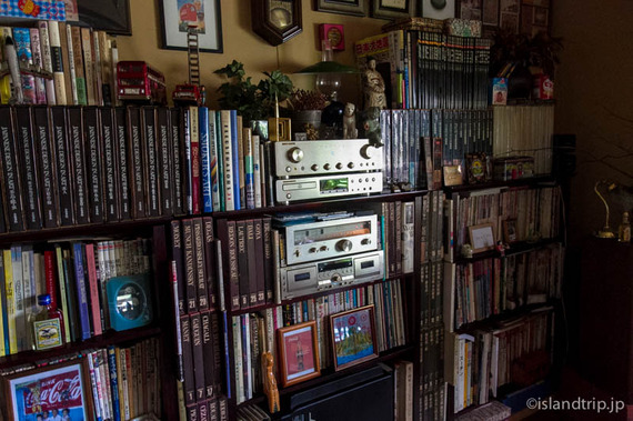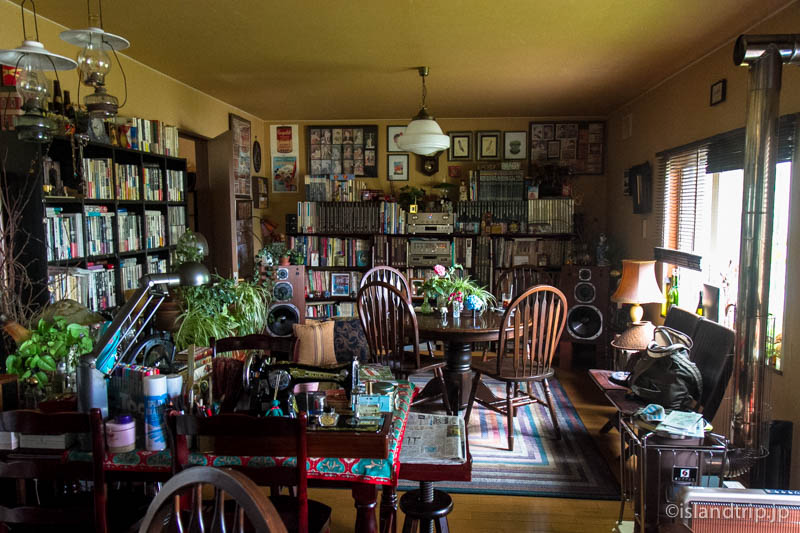 棚を埋める本、掛けられた絵、北海道の離島には似つかわしくないマダム、といった容貌の女性店主の好みの世界が詰め込まれた空間でした。