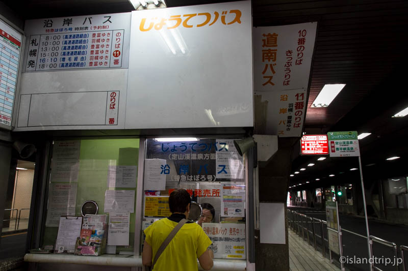 1〜18番までの乗り場がありますが、「11番」が羽幌行きの沿岸バス「特急はぼろ号」の乗り場です。乗り場の直ぐ側にはチケット売り場もあります。