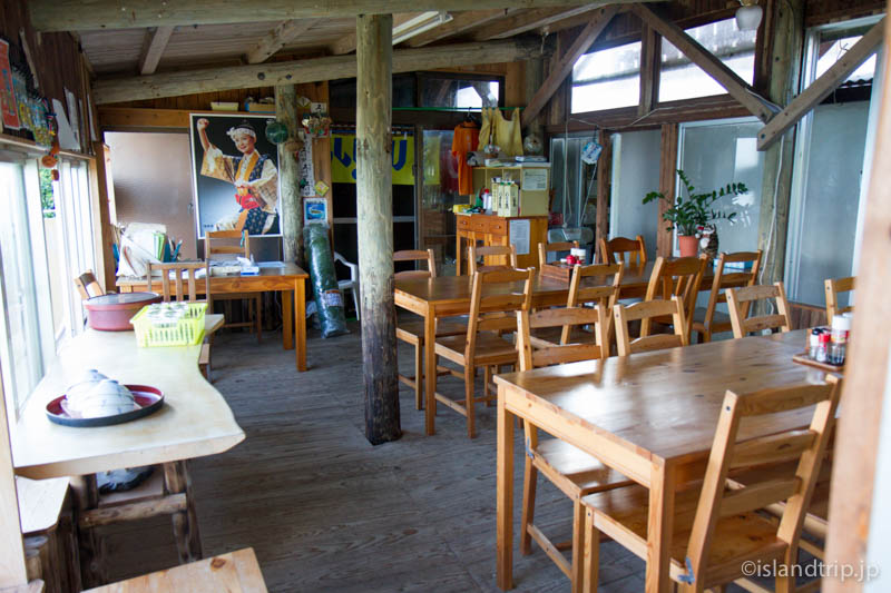 小さい島ですが、宿は10軒近くあります。素泊まりの宿が多いようです。僕が泊まったのは「ペンション マイトウゼ」。ペンションとは名ばかりのバンガロー然とした部屋ですが、島ではおそらく一番個室化された宿のようです。また、離れになっている海の目の前の食堂が印象的でした。