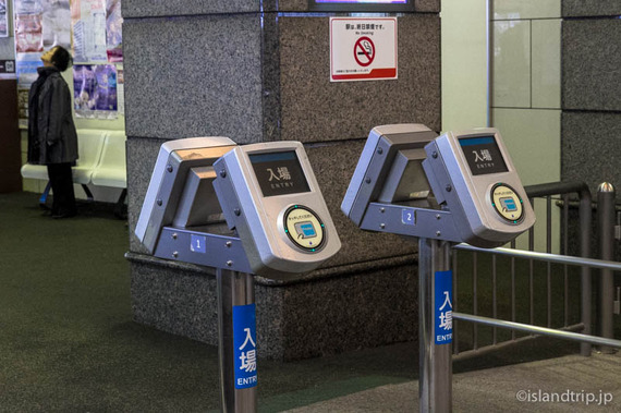 着いた松山市駅は大きな百貨店の麓に中にあり、松山の中心地という風情です。時間があれば近くを散策したいところですが、10時発の伊予鉄道に乗る必要があります。まずは改札を目指すと、ICカードをタッチする改札機が見えます。