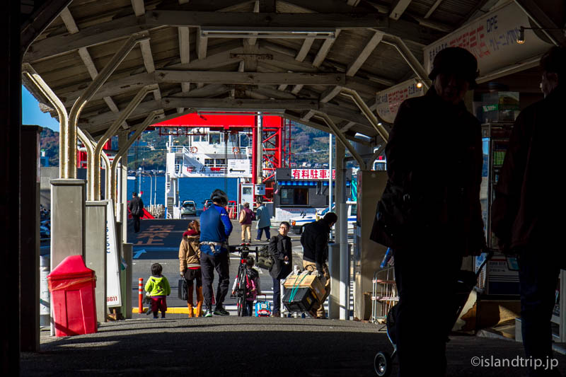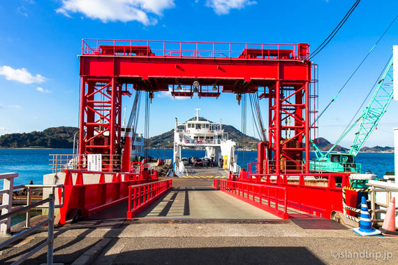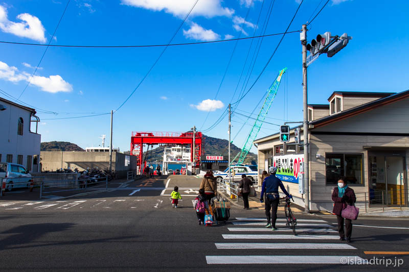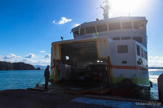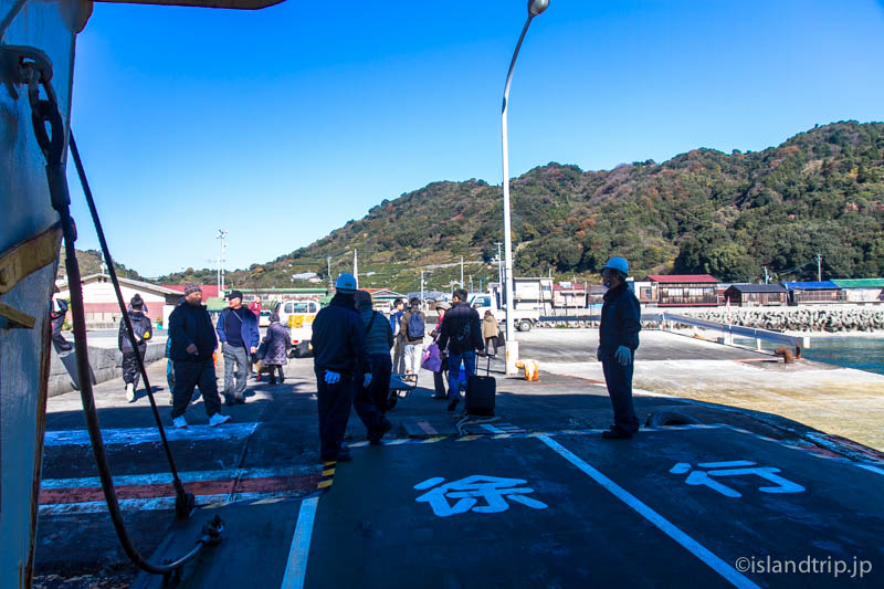 カーフェリーなので接岸と同時に開けられたハッチを渡って睦月島に上陸です。(続きます)