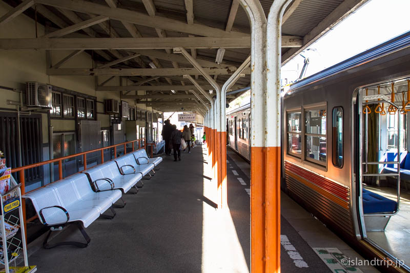 伊予鉄道の高浜駅行き電車は10時に出発。ちなみに、伊予鉄道は民営鉄道としては日本で2番目に歴史のある会社だそうです。