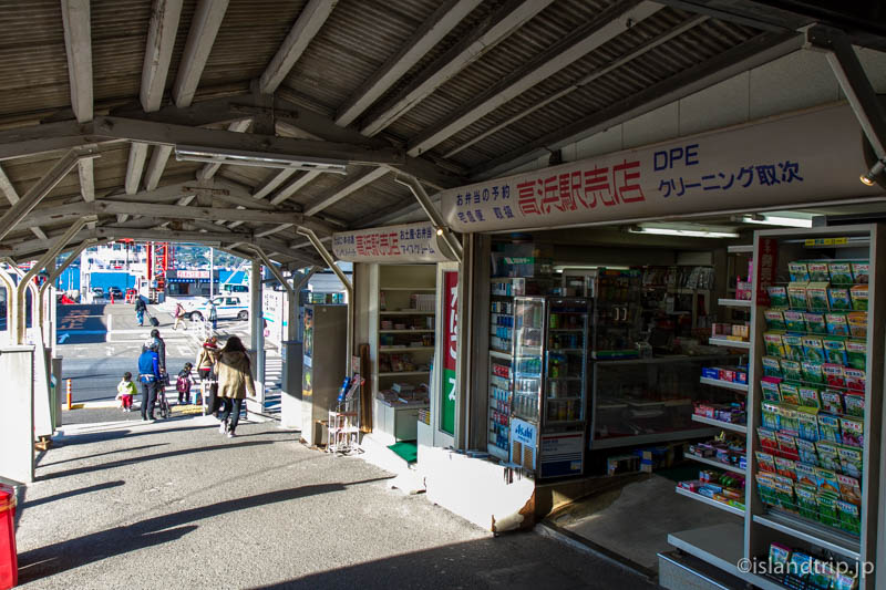 10時21分、定刻通り終点高浜駅に到着。ホームに降り立ち、改札を抜けると駅舎の向こうに港が見えます。いかにも瀬戸内の駅と港、という光景に、急がなければいけないことをほんの少しだけ忘れ、カメラのシャッターを夢中で切ります。