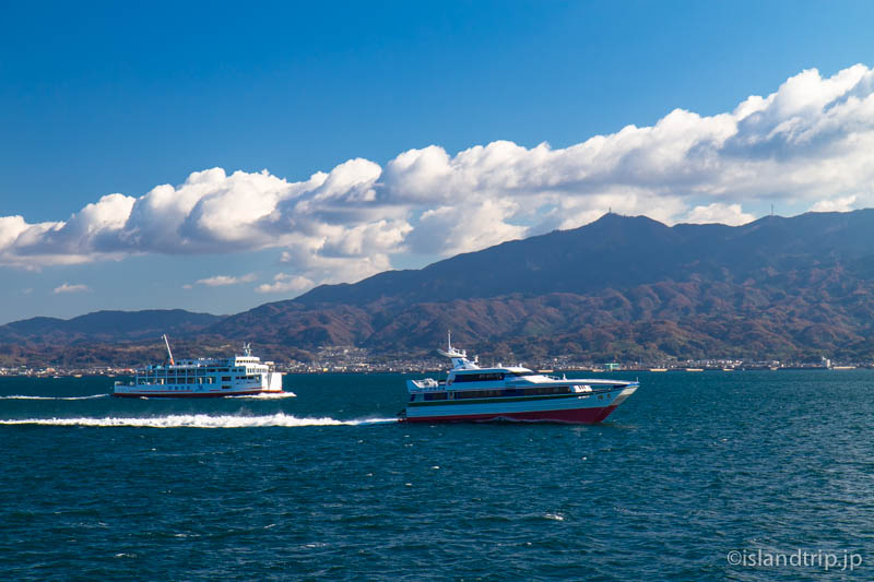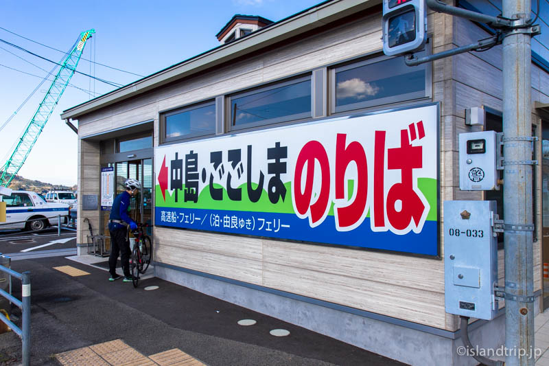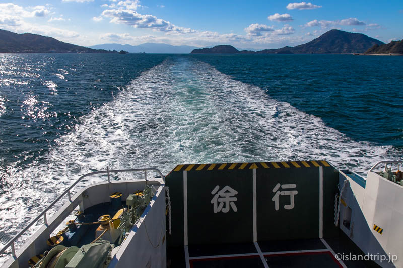 小走りに駅舎を抜け港のすぐ脇にある船の待合所まで行き、船のチケットを買います。すぐさま目の前の船に乗ると、もう出港です。間に合いました。電車と船の出港が接続するようダイヤが組まれているようですね。それも瀬戸内の船っぽいです。