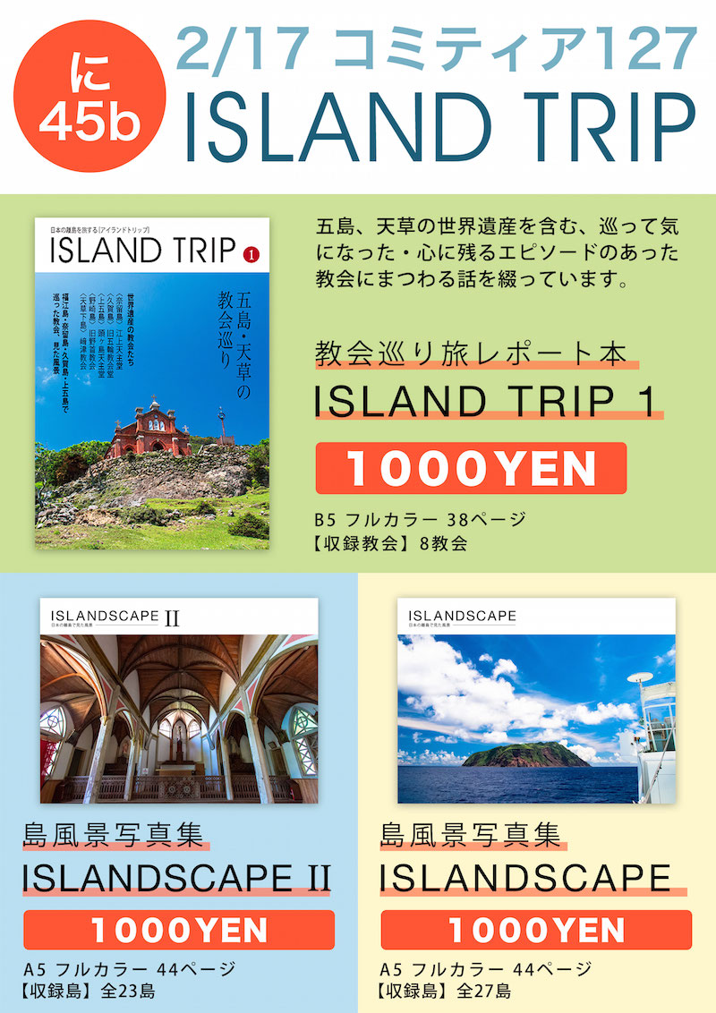 既刊の島写真集と、五島・天草の教会巡りレポート本を頒布