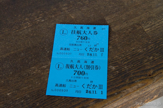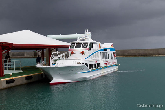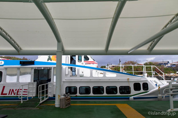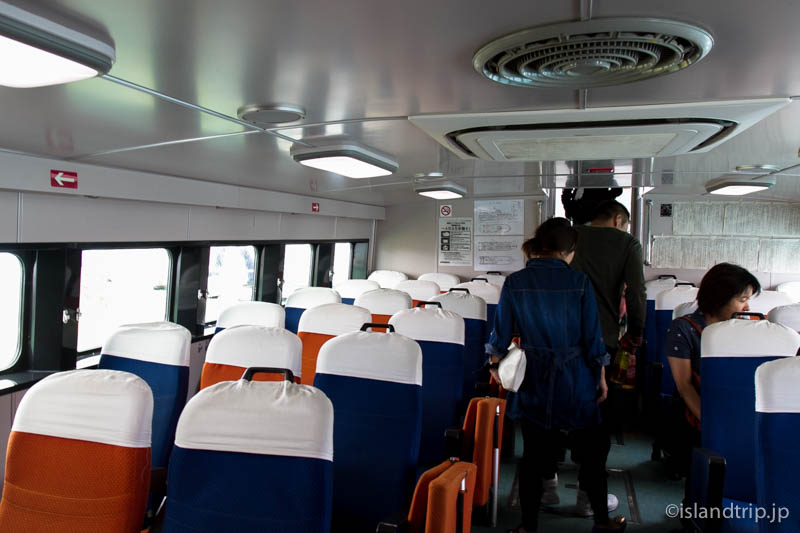 慌てて待合所で船のチケットを買い、港に泊まっている高速船に乗り込みます。チケットは往復だと少し割引されます。乗ってきたレンタカーは港の駐車場に停めておけます。