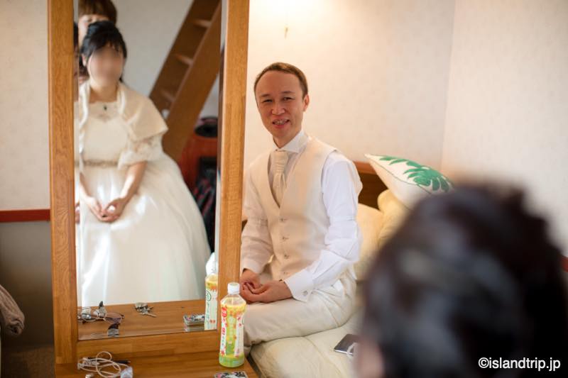 なので、朝は早めの準備開始。奥さんには朝起きてドレスを着てもらい、7時にメイクさんが宿に来て、ヘアメイクをしてもらいます。