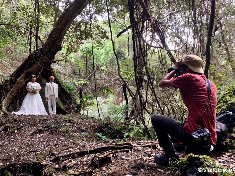 提携ドレスショップのいいところは、「ドレスを着て八丈島の山や森を歩く」というのが事前に伝わっていること。実際にこのお店でも以前に八丈島フォトウェディングをされた方がいたそうで、話は早かったです。