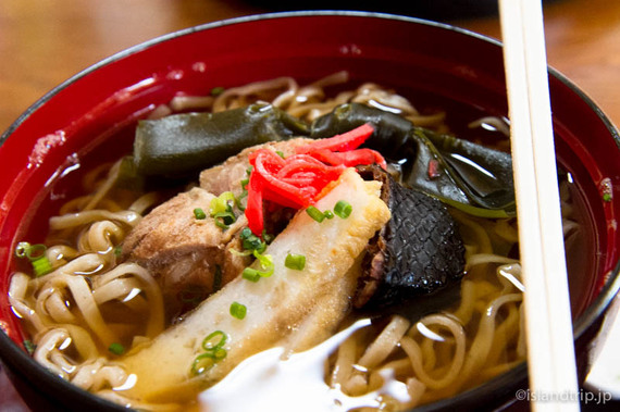 出てきたものは、沖縄そばに燻製されたイラブーの身が載ったもの。