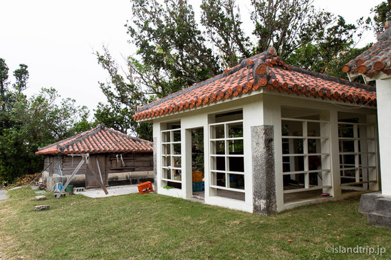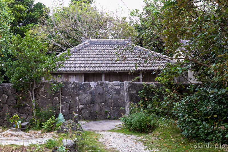 一番左がタルガナーと呼ばれる、先ほど食べたイラブーの燻製小屋、中央が神アシャギ、右がシラタル宮。