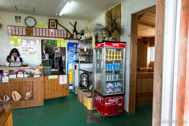 港近くまで戻り、坂を上がったところにある「パーラーさばに」にとりあえず入ってみます。入り口は大きく開け放たれているので、なんとなく海の家っぽさがあります。