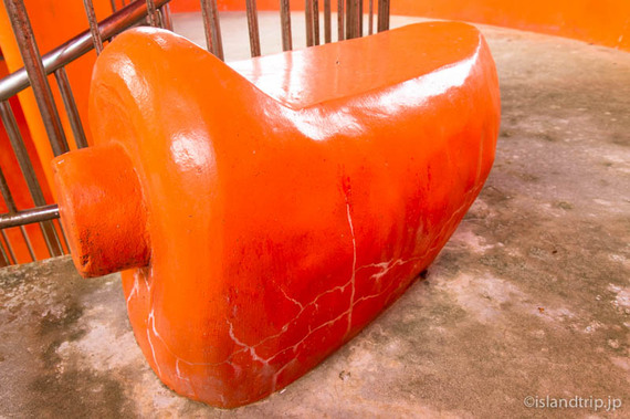 色、形は、まさにニンジン。中のベンチまでニンジン。沖縄の離島には何かを模した展望台が結構ある印象です。伊是名島にも巨大なシーサー型展望台、あったなあ。