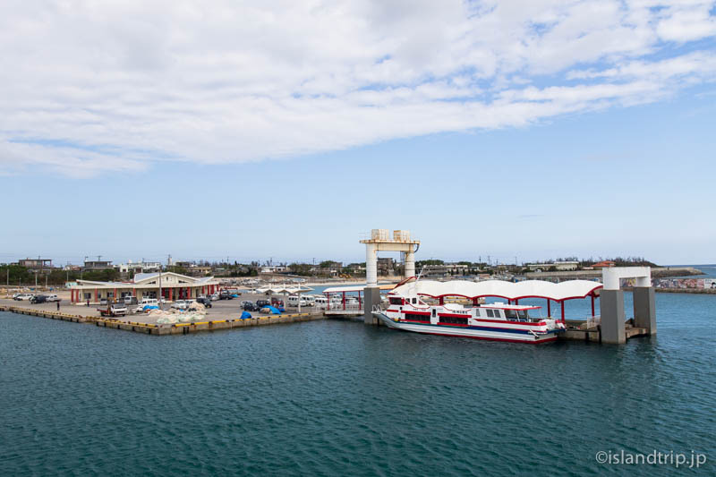港の待合所が見えてきますが、出迎えなどはほとんどいません。パワースポットとして人気の久高島に比べて、シーズンでもない11月の小さな島は、やはりこういう光景が似合います。