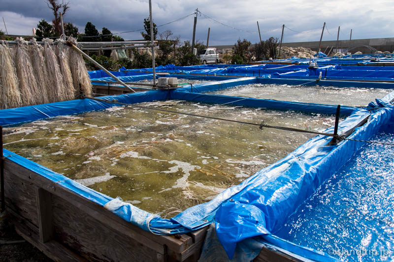 11月はまさに種付けのシーズン、ということみたいですね。港はあちこちに水槽があり、種付け用の網が架けられていました。