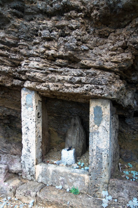そばには「マーカー」と呼ばれる鍾乳石を祀った祠も。男女が抱き合った姿に似ていることから、子孫繁栄の御神体として崇められているそうです。