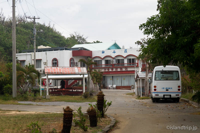 浜の入り口に「民宿神谷荘」の建物がありますが、客はおろかスタッフも誰もいなさそうでした。