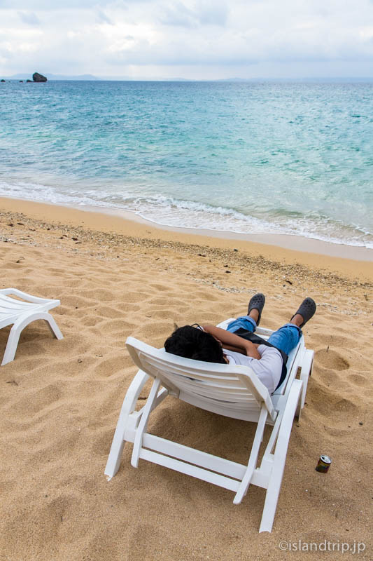 友人とトゥマイ浜に置かれたままになったビーチチェアに寝そべり、海を見ながらお気に入りのアニメ談義などをしていると、雲が晴れてきました。ようやく少し沖縄の離島らしい色が目に入ってきます。(続きます)